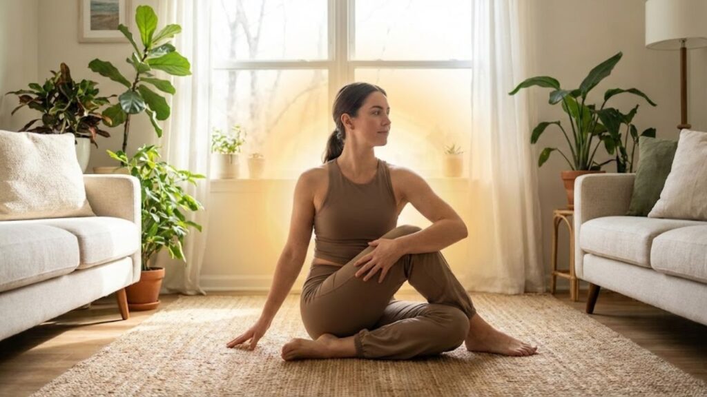 Child’s Pose is a gentle and restorative position that helps relax your abdominal muscles while calming your nervous system. This pose increases blood flow to your stomach area. The improved circulation helps reduce bloating and makes digestion-related discomfort feel better.